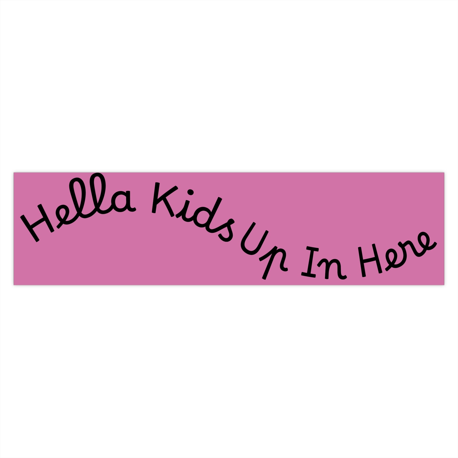 Hella Kids Up In Here Bumper Sticker — Pink Kid-Friendly Family Car Decal